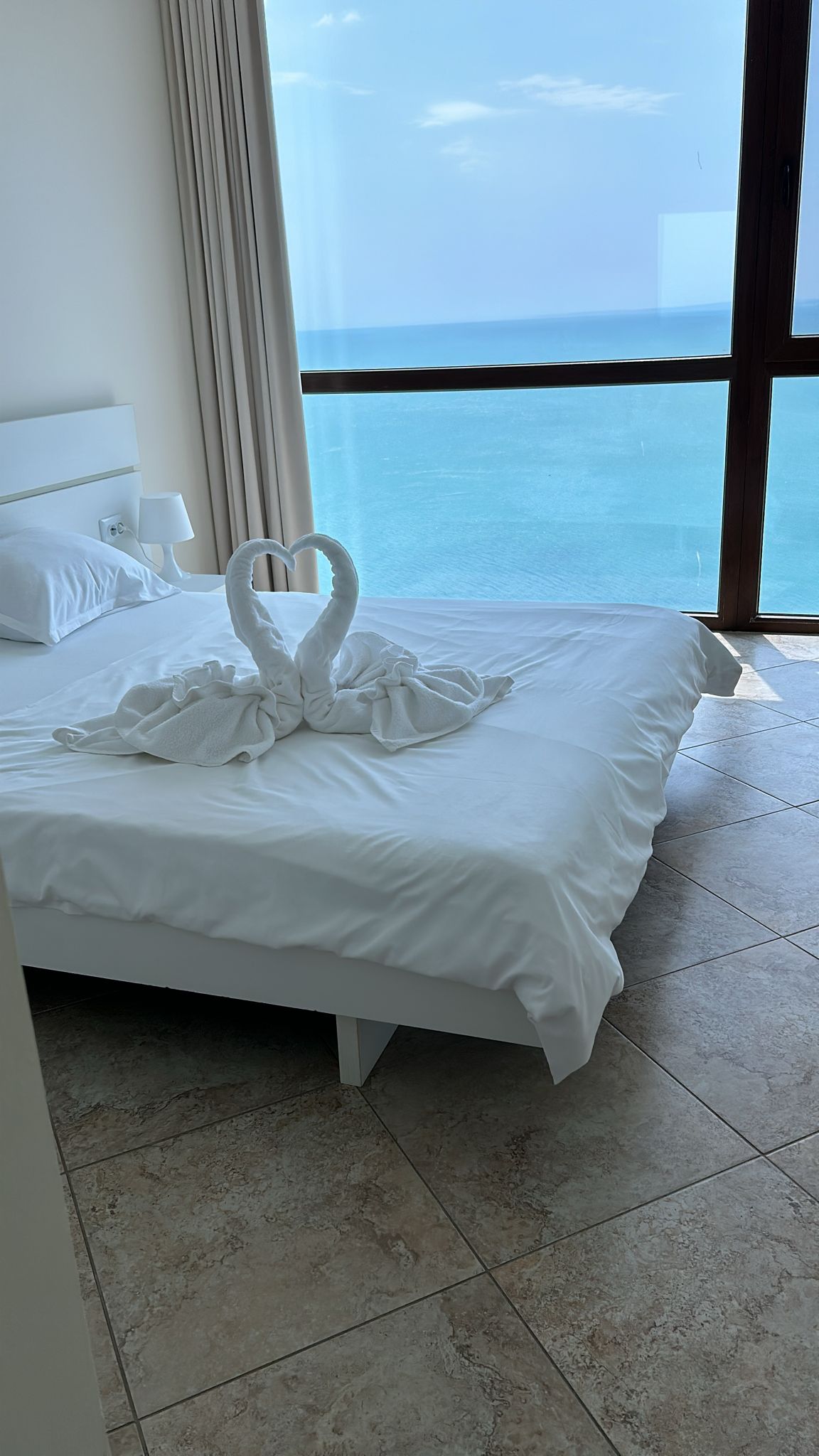 Este format din doua camere - un dormitor, un living, o baie si un mic dulap. Dormitorul are un pat dublu, două noptiere, oglindă mare și o fereastră panoramică mare spre mare. Livingul oferă o canapea, o masă, TV prin cablu. Apartamentul are, de asemenea, aer condiționat și Wi-Fi gratuit.